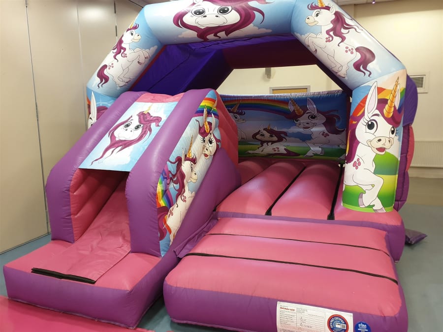 Unicorn Bouncy Castle with Slide for hire in Doncaster, Rotherham, Sheffield and surrounding area