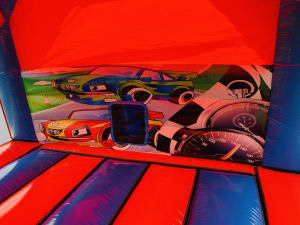 For more chequered-flag fun, see our racing themed front slide bouncy castle and matching racing themed ball pool, or put them in the driving seat with the Didi Car race track and cars, available in pink or black. Our top pit team will be happy to help you choose, so call them today.