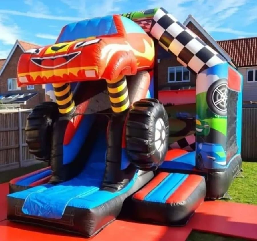 🚗 3D Monster Truck Bouncy Castle & Wiggle Car Track Hire