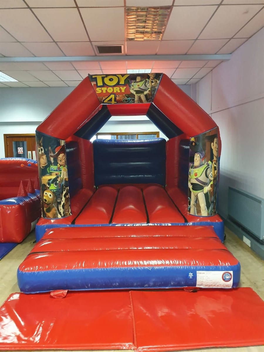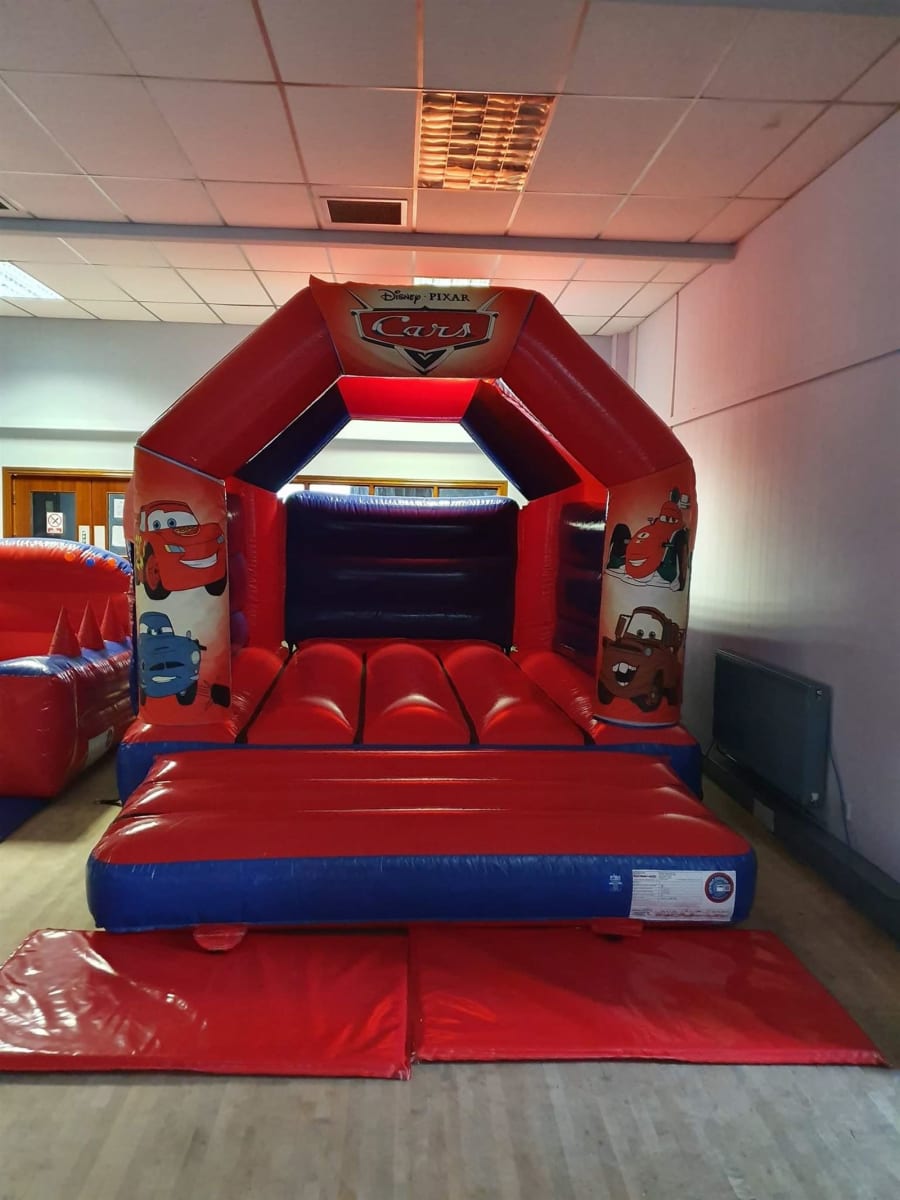 Our huge red and blue bouncy castle for hire is firmly aimed at the boys, with a choice of all your little lad’s favourite characters available to decorate it.
