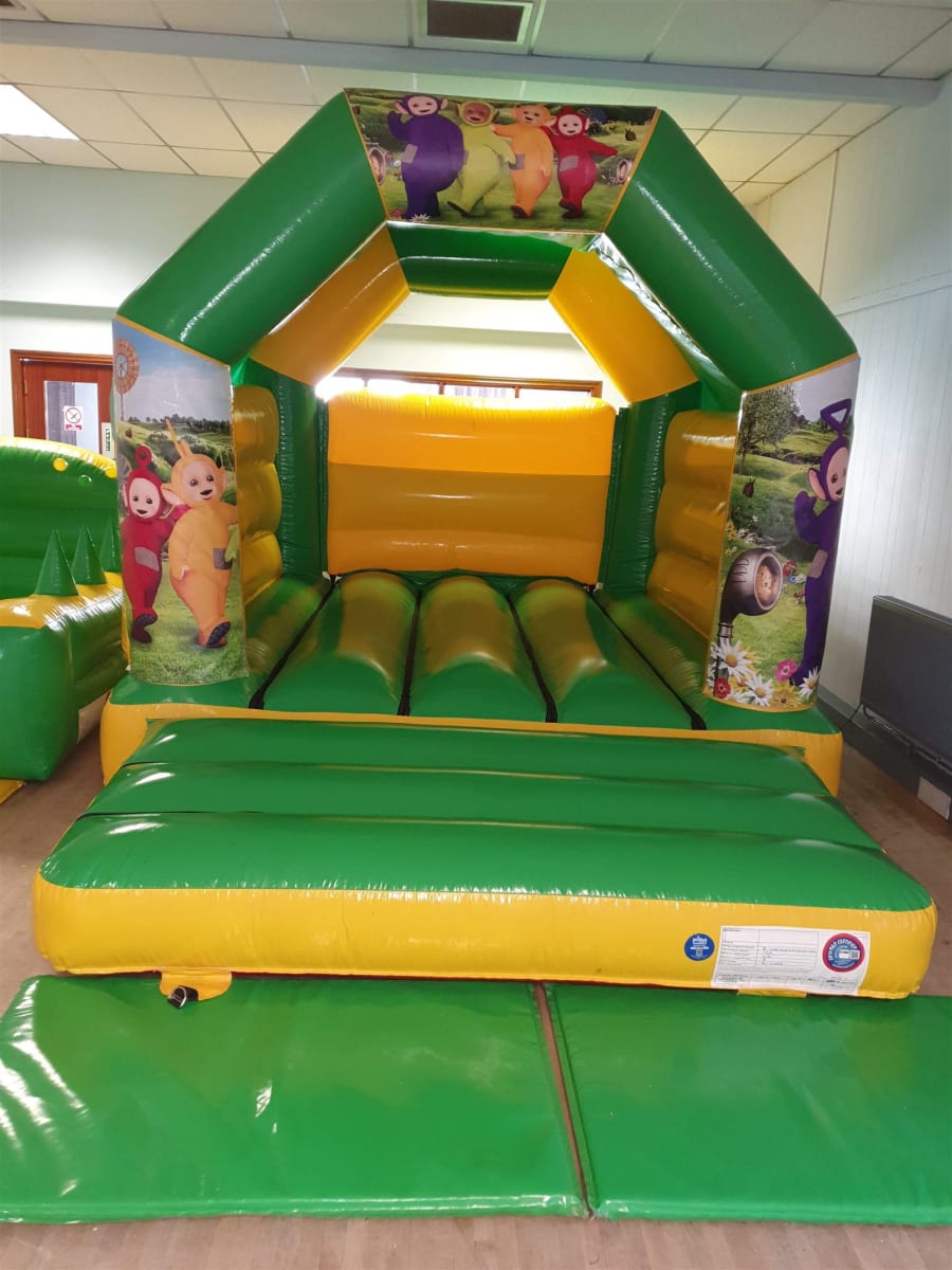 Our yellow and green bouncy castle for hire is one of our most flexible castles, because we can swap the artwork to match your guests, so it looks like it has been tailor made just for them, with all their favourite character come to play.