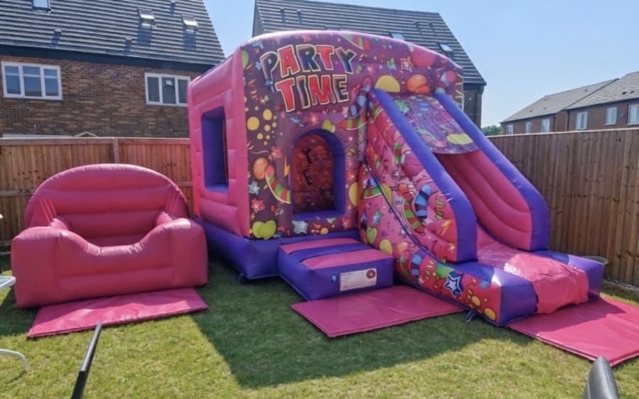 🎀 Pink Party Time Bouncy Castle with Slide & Ball Pool Hire