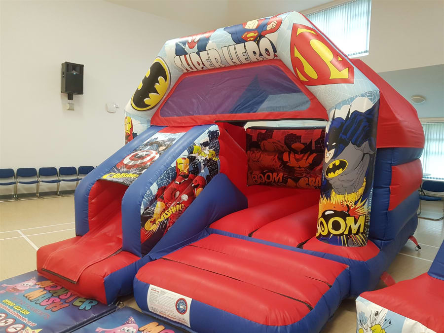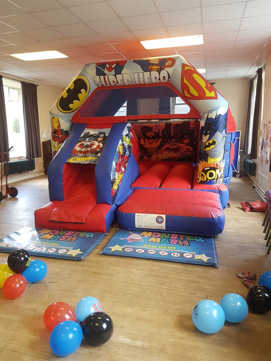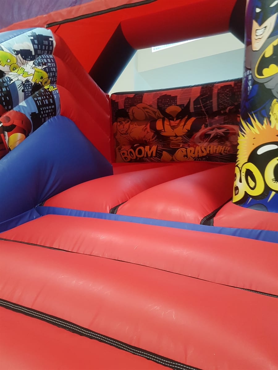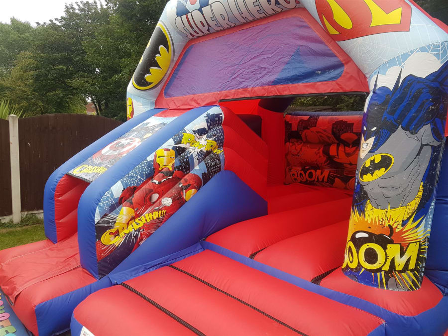Super Hero Bounce and Slide Bouncy castle for hire in Sheffield, Rotherham and Doncaster