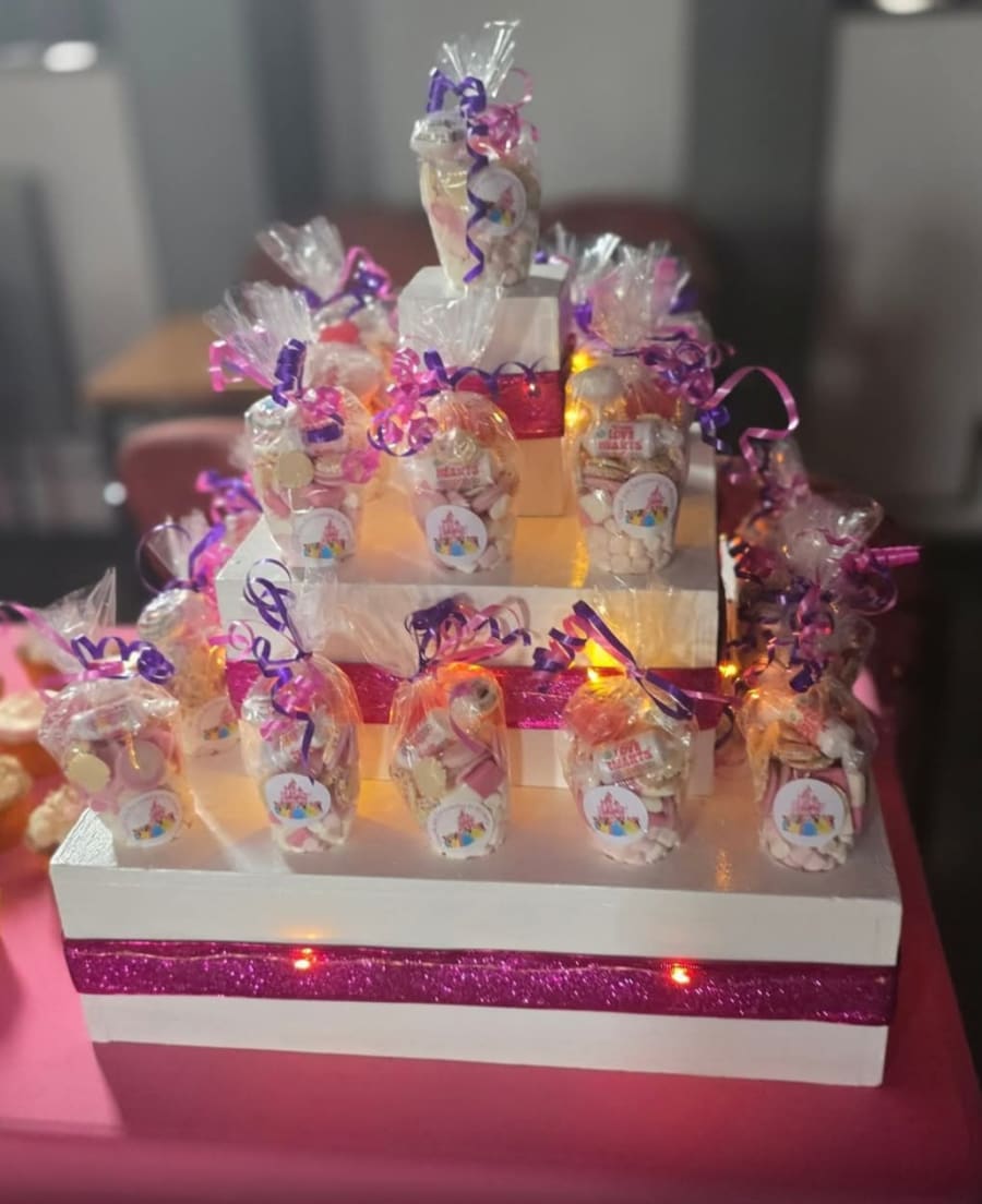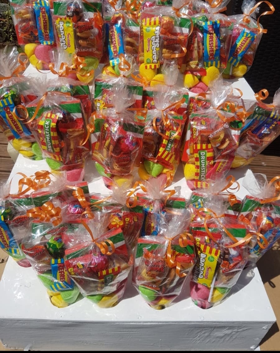 Originally created as a very special goody bag for children’s parties, they can be personalised with a special sticker bearing the name of the birthday boy or girl, with a choice of sweets appropriate to their gender, their tastes and even their favourite football team or super hero colours.