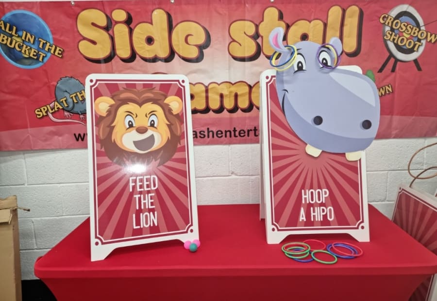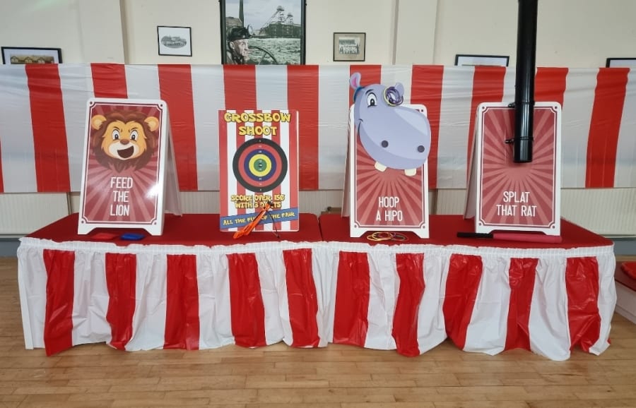 Carnival games for hire in Rotherham, Doncaster and Sheffield and across South Yorkshire Roll Up! Roll Up! For all the fun of the fair! Playing carnival games is half the fun of visiting a fundraising event. Testing your skills on timeless sideshow stalls to try to win a prize. And the more professional your games look, the more people will want to play them. That’s why it makes sense to hire professional carnival games for your next charity fair or fete. It’s a great way to put the fun into fundraising and boost your takings for your good cause. Just add a little showmanship to encourage your guests to have a go, playing on the egos and rivalries between friends and between the girls and the boys, and you’ll soon have them queuing up to pay to play. Monster Mash offers a wide range of sideshow games, with all the classics that have been thrilling crowds at carnivals for generations, including: