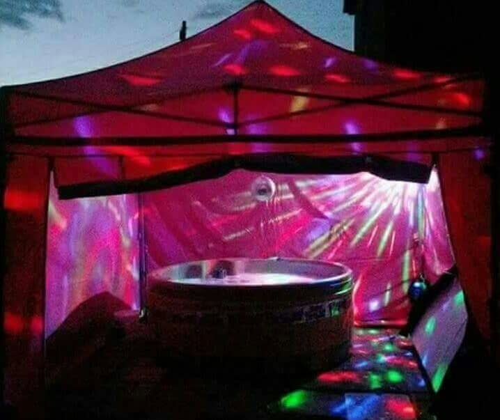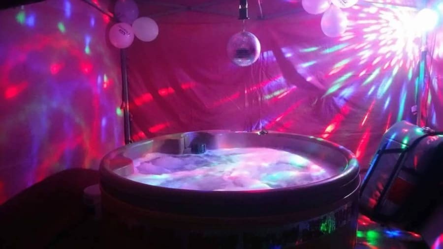 Choose our pink hot tub party package and you’ll also get a pink gazebo for added privacy, disco lighting,mirror ball, and a CD/iPod music system. We’ll even decorate the area for you with party balloons.