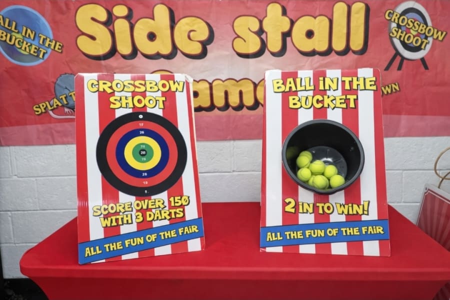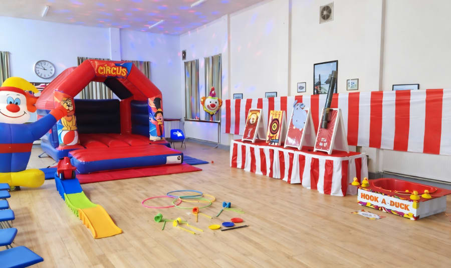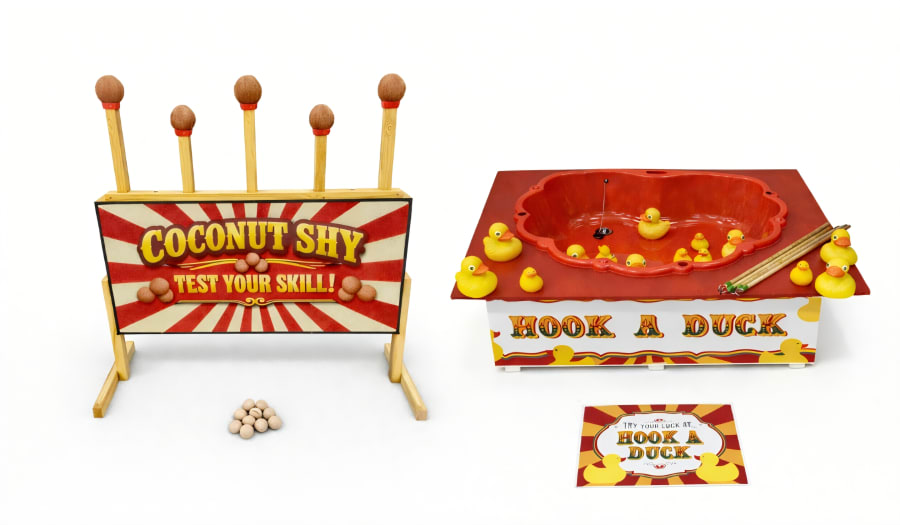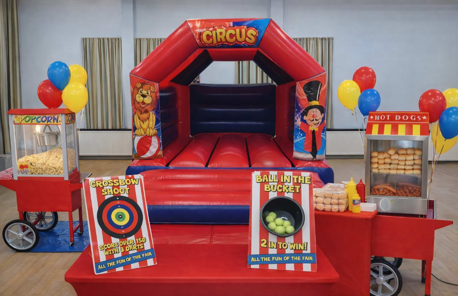 This great value circus party package includes: • Circus bouncy castle • Hook a duck including 25 prizes • Select any 3 of our table top carnival games • Circus party games including Spinning plates • Juggling Balls • Diabolo • Ride on rollercoaster • Inflatable clown