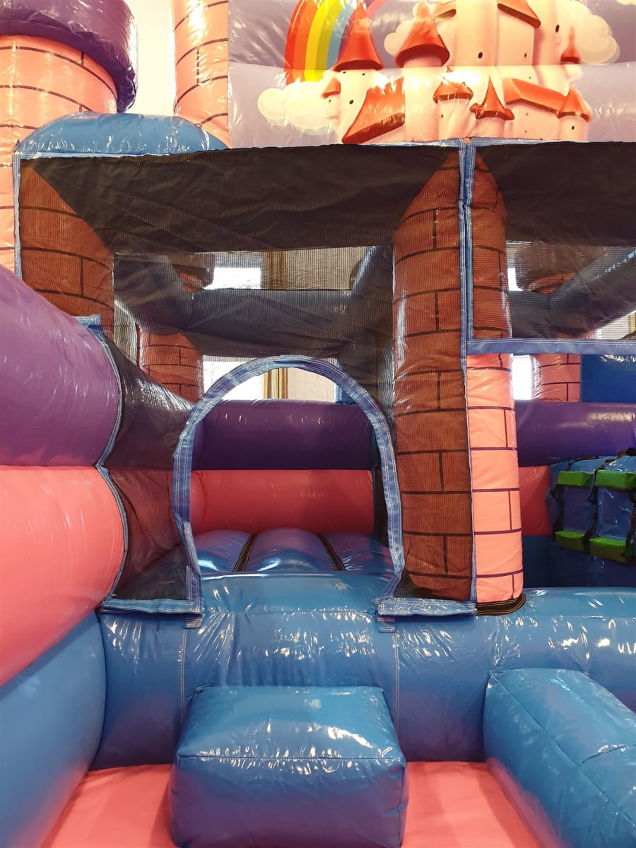 Finished in pretty pink and purple tones this is a huge and hugely impressive party piece and a real money maker for any charity event or school fair. But it is big, so please make sure you check you have the space required before you book, to avoid disappointment on the day. This item is for indoor use only, and you’ll need at least 25ft by 28ft of floor space, plus a ceiling clearance of at least 14ft. If in doubt, please give us a call to confirm suitability.