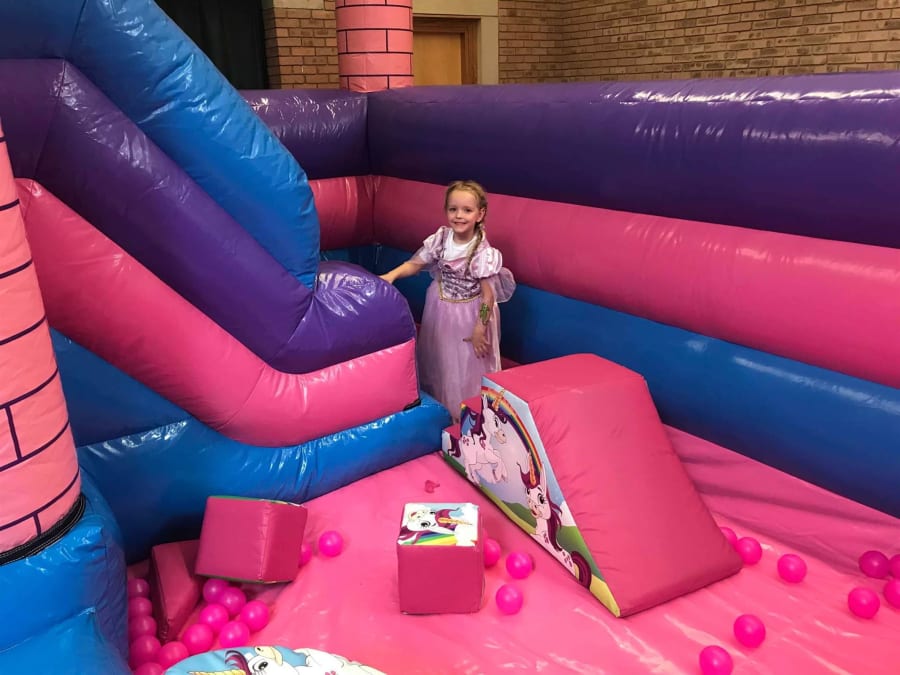 The princess play park for hire in Rotherham, Sheffield, Doncaster, South Yorkshire and surrounding areas has not one but two ball pools, a slide, soft play shapes and a huge bouncy castle, all set around the castle and its courtyard. And because it’s all safely contained within high, squidgy walls, they can play safely for hours, with just one entrance so they can’t wander off the second you turn your back.