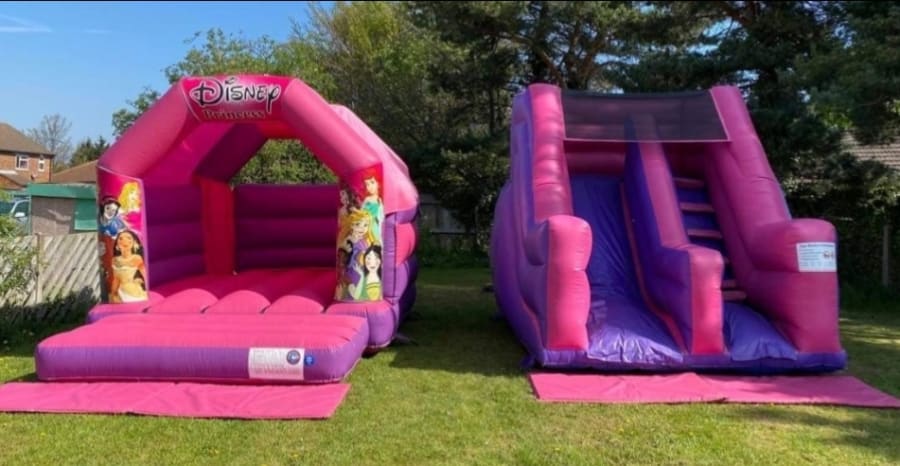 Pink Bouncy Castle & Inflatable Slide Package Hire