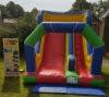 The fun starts with our super inflatable slide. Scramble up the ladder, across the 8ft high platform and you’re ready to plunge down with a scream onto the mats below. It’s thrilling fun for the under 12s who’ll want to feel the excitement again and again, sending your takings up as they keep sliding down.