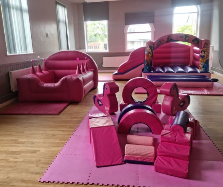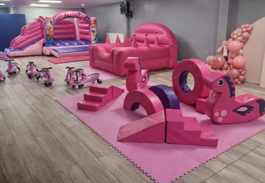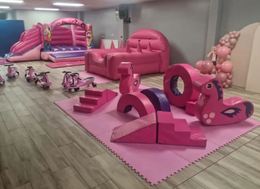 ✨ Soft Play Gym – Slides, climbing cylinders, crawl-through hoops and tunnels, plus a huge princess carriage with rocking horses!
